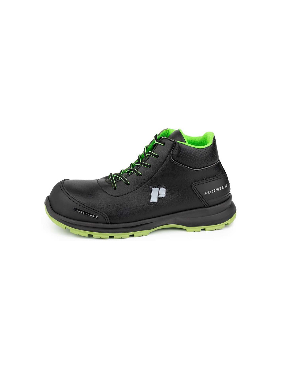 Bota de seguridad de microfibra textil transpirable e hidrofugada con suela tridensidad que incorpora canal de estabilización central en el tacón.
