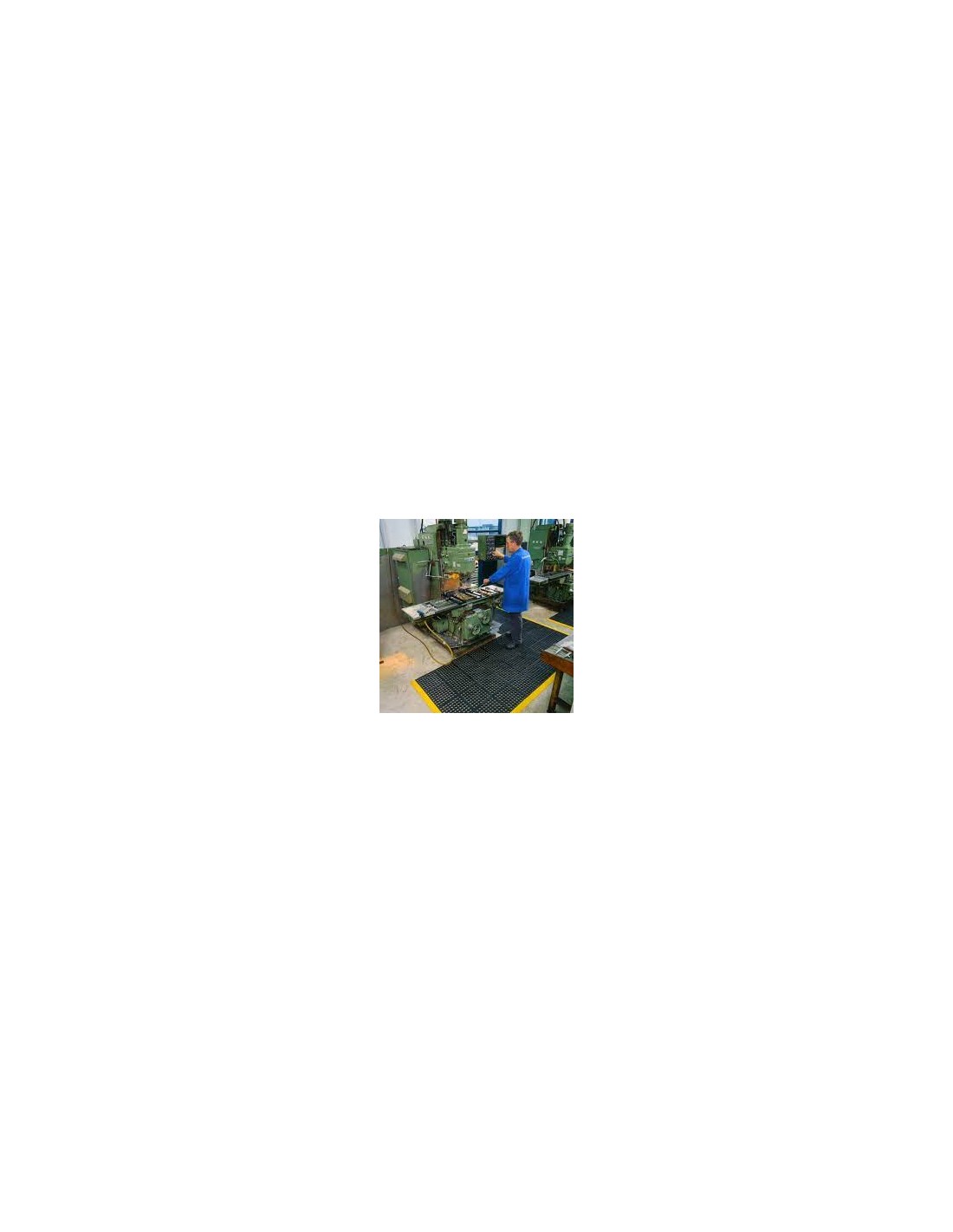 Alfombra para puesto de trabajo individual de alta calidad antifatiga, ideal para entornos industriales donde se necesita una alta resistencia. Las superficies de tamaño estándar para puestos individuales se colocan sobre el pavimento sin requerir instalación.