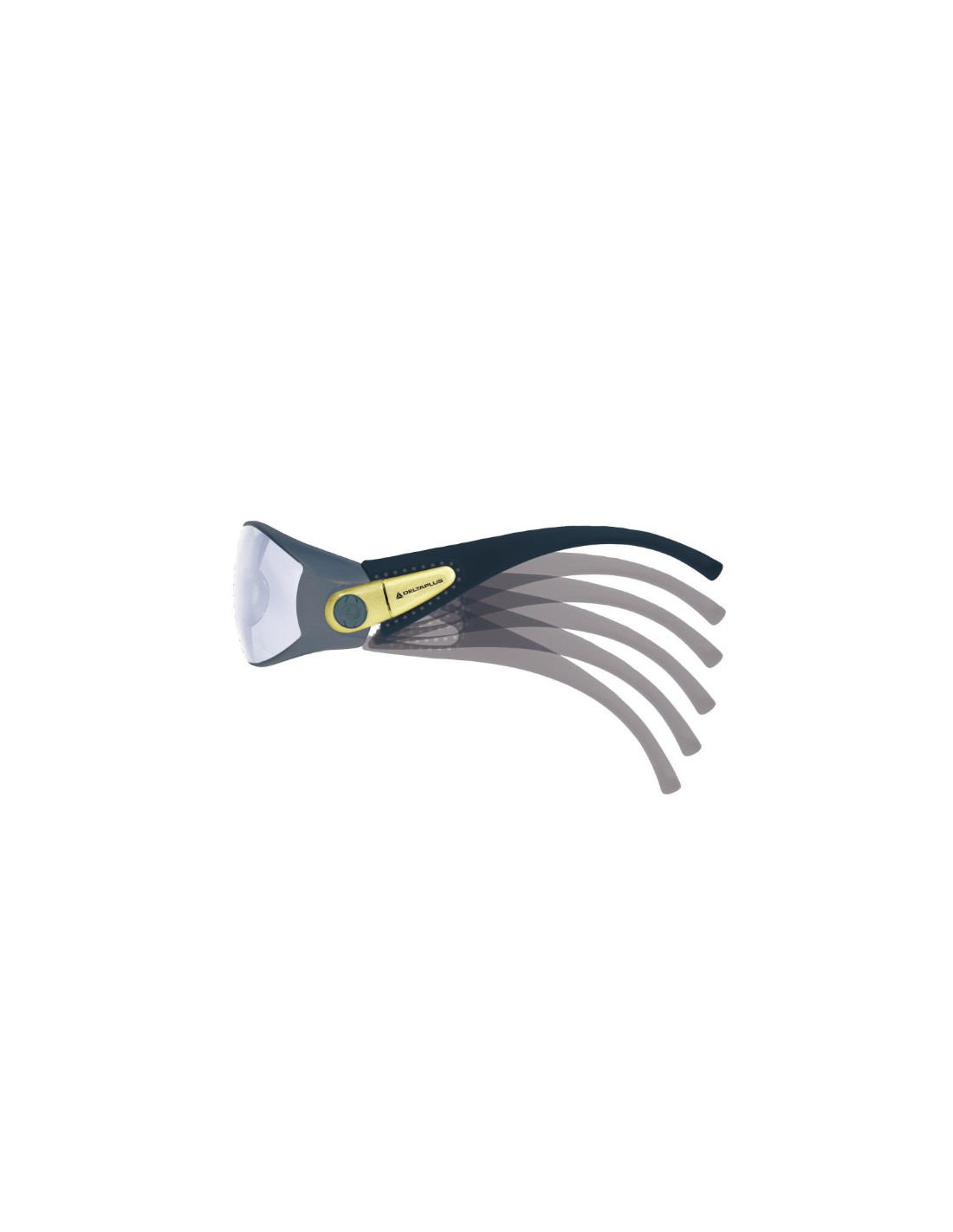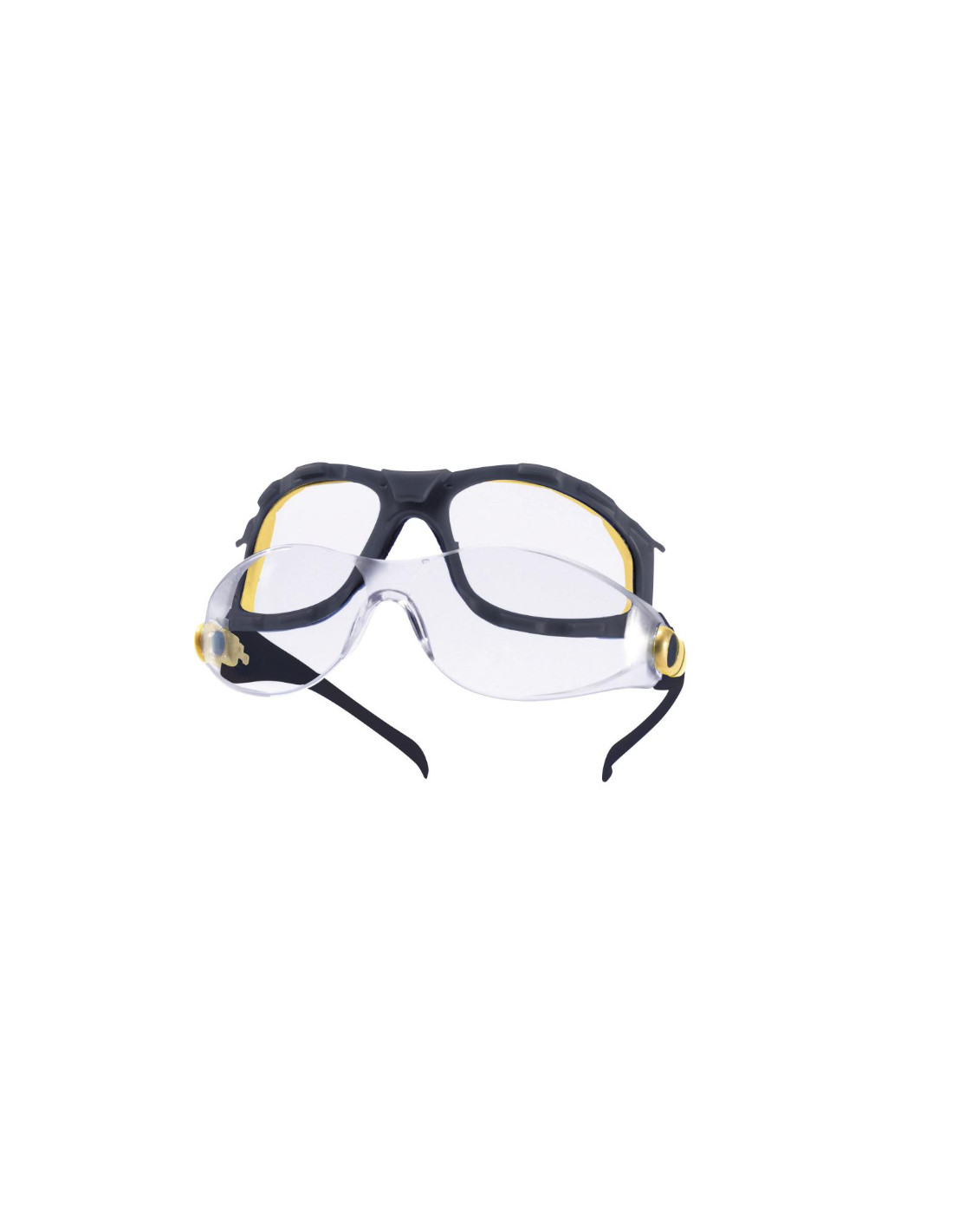 Gafas de policarbonato monobloque. Puente nasal policarbonato integrado. Patillas nylon abatibles. Protecciones laterales.