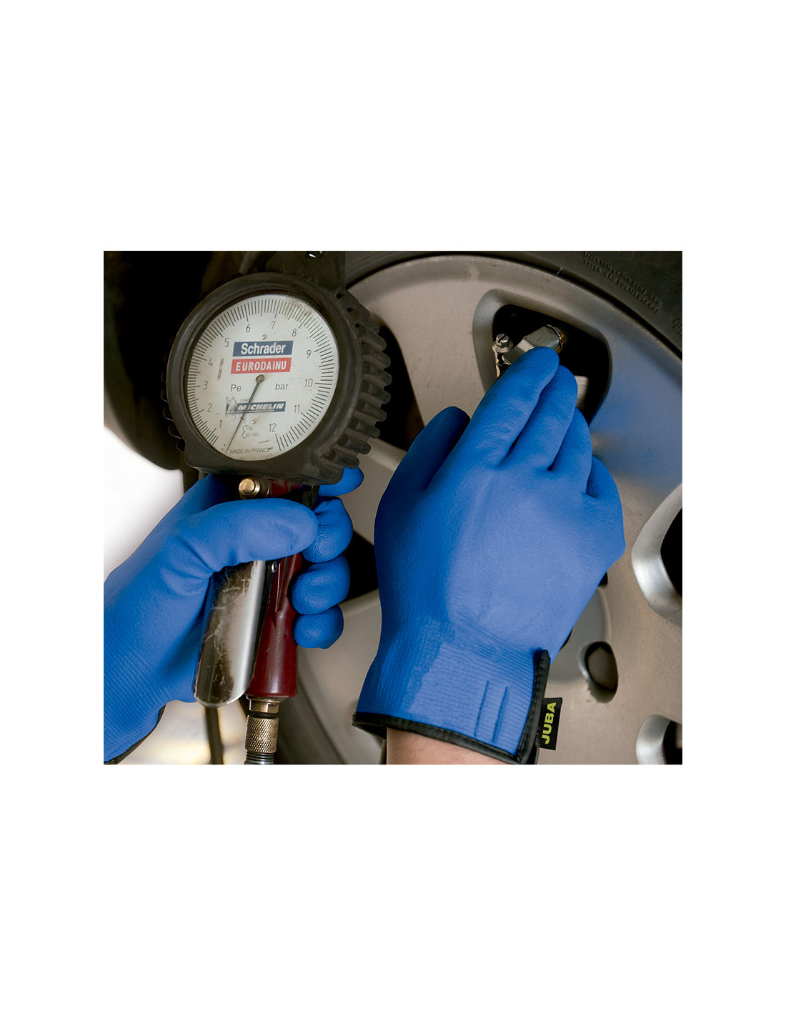 Descubre los guantes de nitrilo JUBA - 5115BL Agility Blue, diseñados para ofrecer una protección robusta y versátil en diversas aplicaciones industriales. Estos guantes sin costuras, recubiertos de nitrilo micro foam, combinan durabilidad, confort y un sólido agarre, siendo ideales para una amplia gama de tareas laborales.