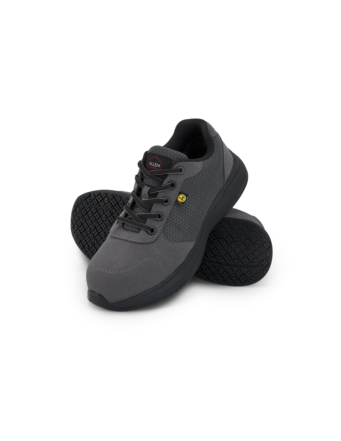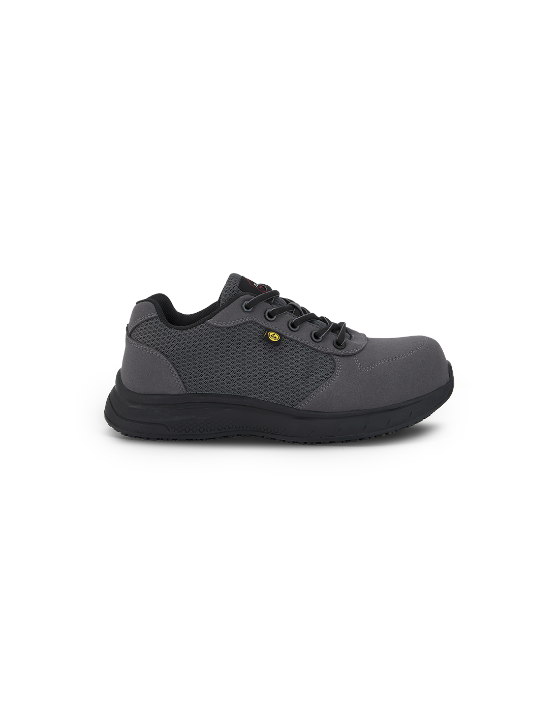 Microfibra de serraje, tejido de rejilla 100% reciclado, cordones de poliamida de alta resistencia, suela de poliuretano de doble densidad, puntera de fibra de vidrio y plantilla antiperforación textil.