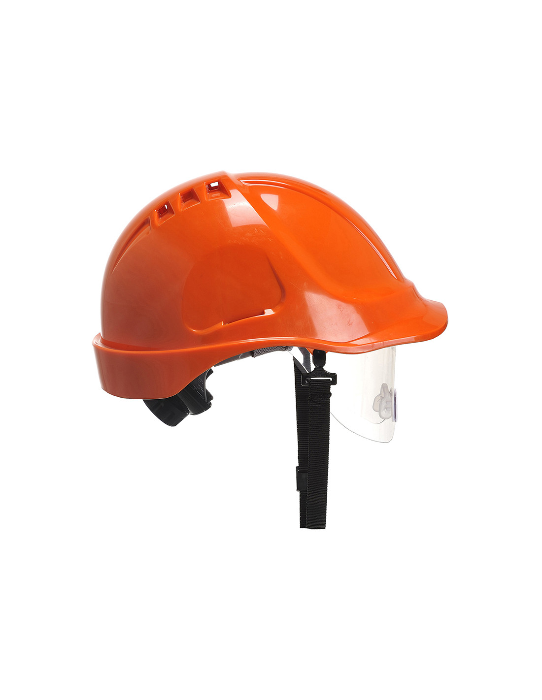 Casco ventilado. Cubierta de ABS, cómodo arnés textil de 6 puntos, con ajuste por regla, ajustable a tallas 56-63cm. Banda para sudor y barbacoa incluidos. Vendido con el visor retráctil PW56 incluido. Piezas de repuesto disponibles.