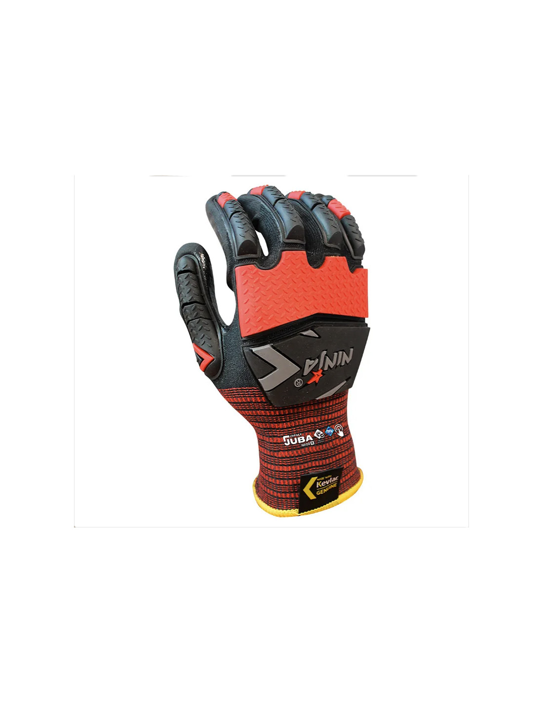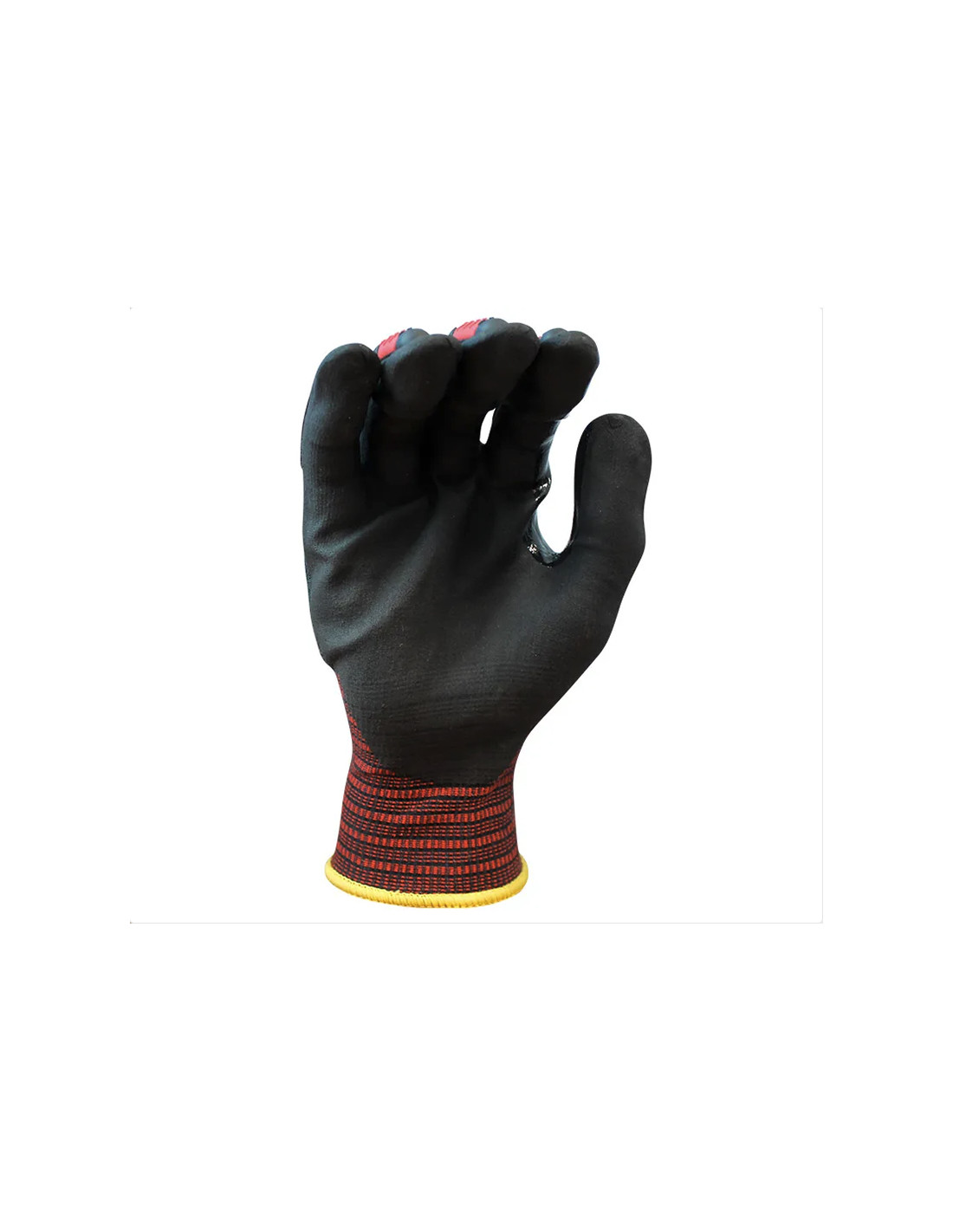 Guante HPPE mezclado con Kevlar® y elastano recubierto de nitrilo foam en la palma y refuerzos TPR anti-impacto en el dorso.