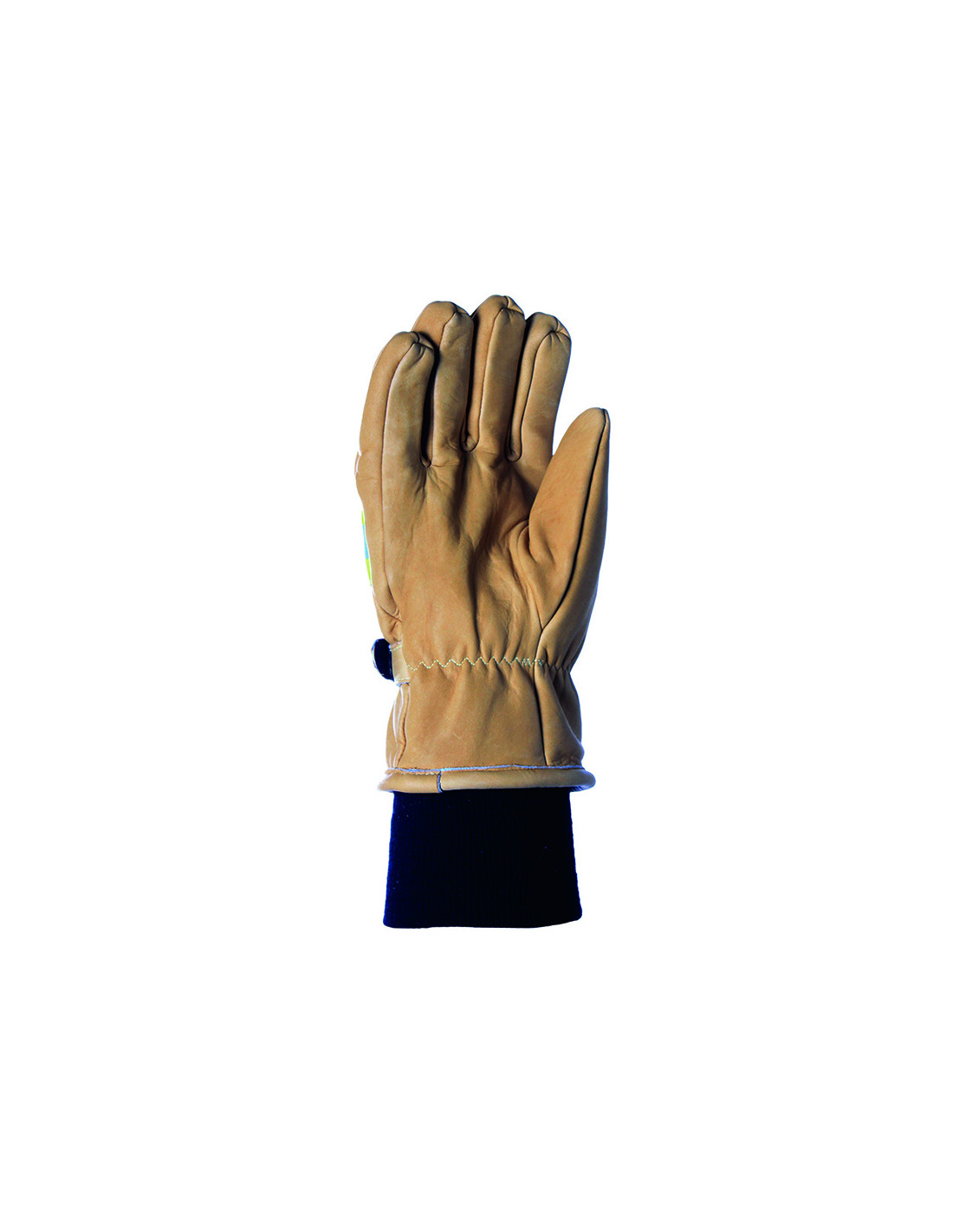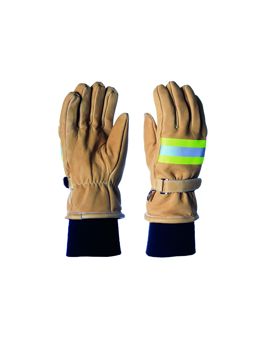 Guante de piel flor vacuno hidrófuga completamente ignífugo.