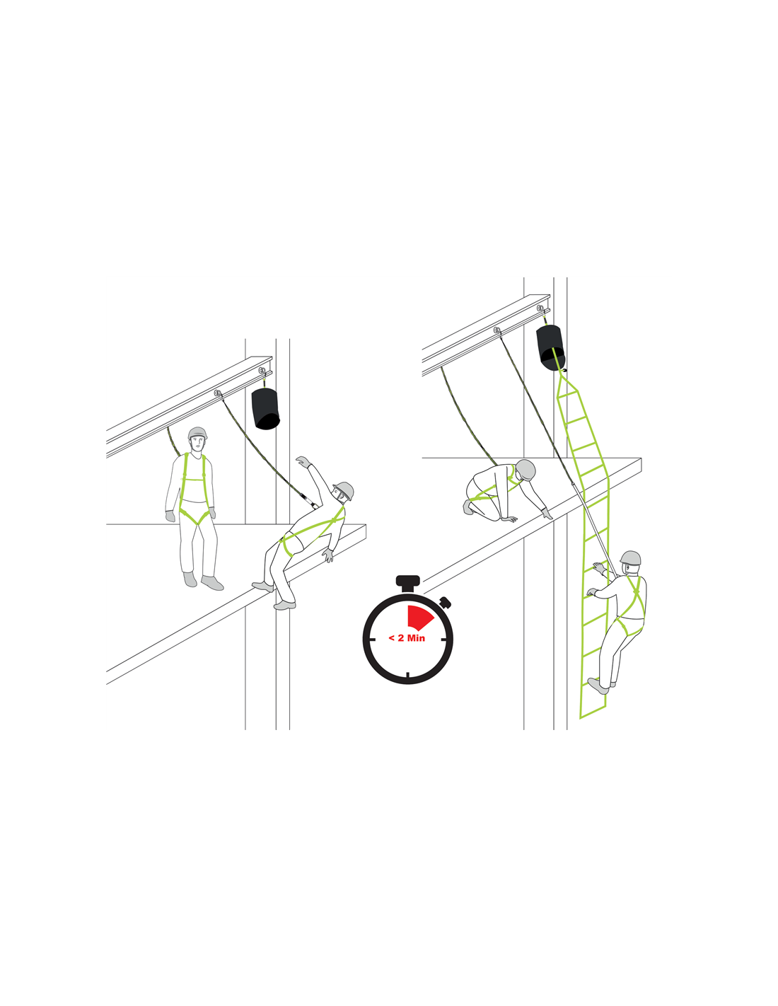- Diseñada para el rescate y la evacuación de cualquier usuario de material anticaída que no haya perdido la conciencia después de una caída. ¡NO DEBE UTILIZARSE COMO MEDIO DE ACCESO!.