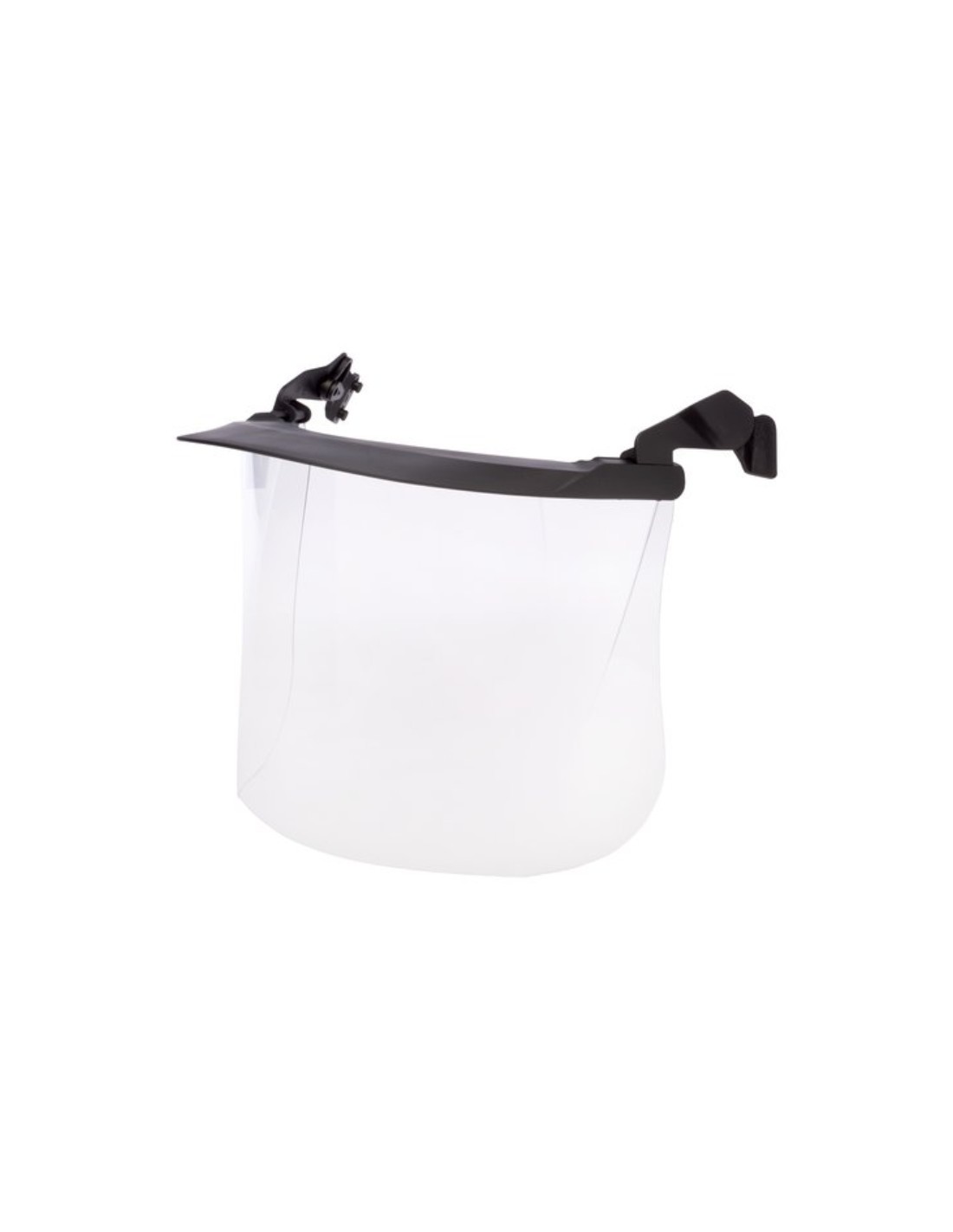 La pantalla facial V4H, pantalla facial de policarbonato transparente, con visera estándar, de 1,2 mm de grosor, clase óptica 1, resistente a arañazos. Está diseñada para los cascos de 3M™ y proporciona protección contra los rayos UV, el metal fundido y los impactos de baja energía.