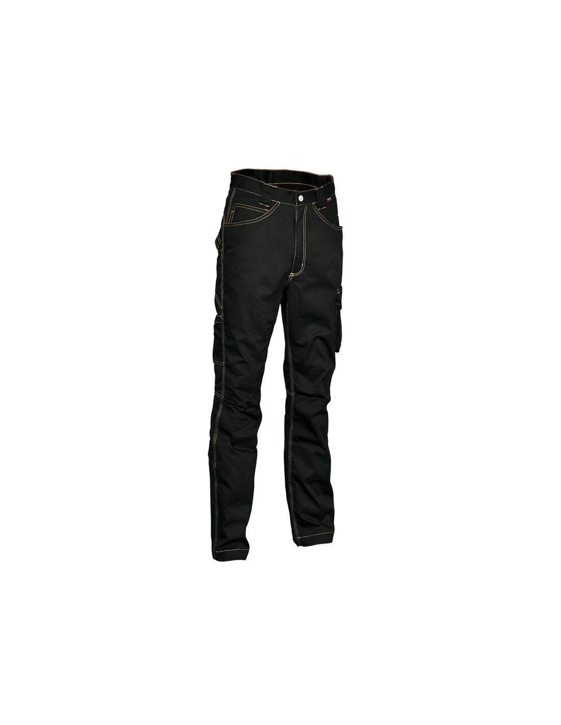 Pantalón multibolsillos con amplios bolsillos delanteros, tiro reforzado, doble bolsillo trasero, uno con tapeta, inserto portabolígrafos, pasador portamartillo, corte ergonómico de las piernas y rodillas, bolsillo lateral, bolsillo porta monedas, bolsillo porta metro, cintura ajustable, cremallera YKK®